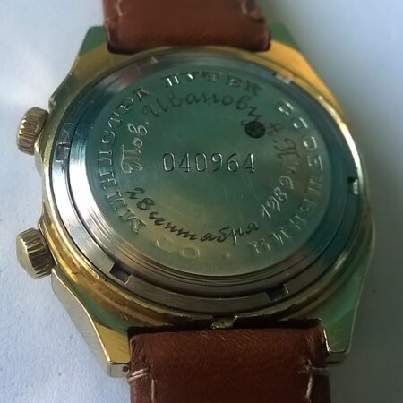 Mécanisme : Poljot 2612.1 (à alarme) avec comme marquage: 2612.1, 18 камней, et SU.