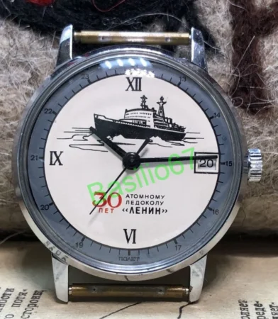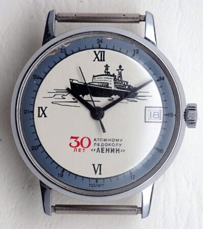 Le cadran porte la mention «30 лет атомномy ледоколy « Ленин »»: «30 ans du brise-glace atomique « Lénine »»