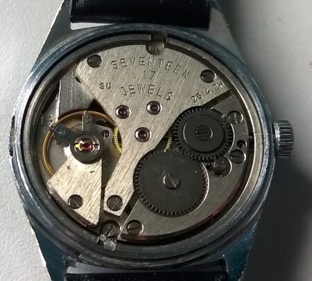 Mentions sur le calibre : Logo Poljot (couronne) sur la platine, 2614.2H, SEVENTEEN 17 JEWELS, et SU sur le pont.