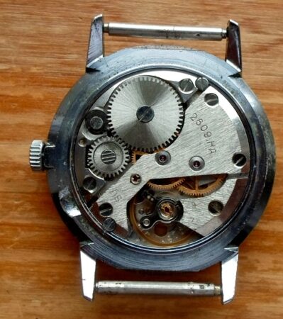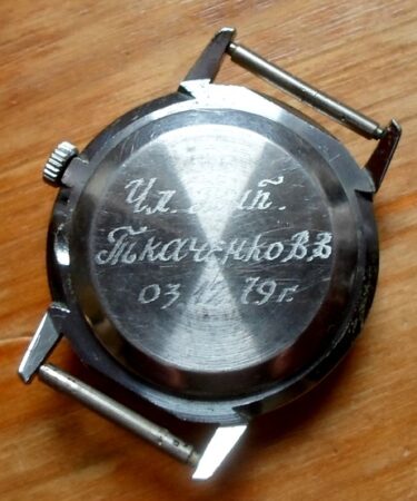 C’est une montre qui a connu plusieurs imitations post-soviétiques, comme celle-ci, qui emboîte bien un Raketa 2623H mais qui a un faux cadran et des aiguilles de Slava: