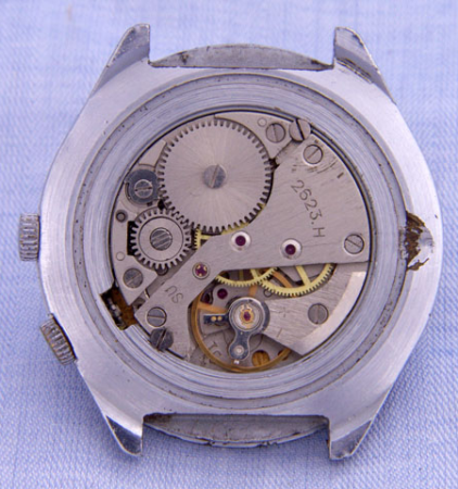 Mentions sur le calibre : 2623.H, SU (Soviet Union), logo raketa (raquette symbolisée) sur la platine).