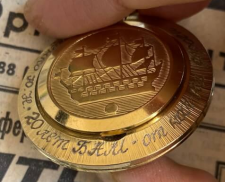 Gravure sur le fond : La frégate Orel telle qu’elle apparait au sommet de la flèche de l’Amirauté