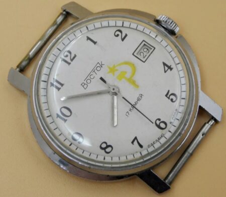 Mentions sur le cadran : 17 камней (17 rubis) et cделано в cccp (fabriqué en URSS).