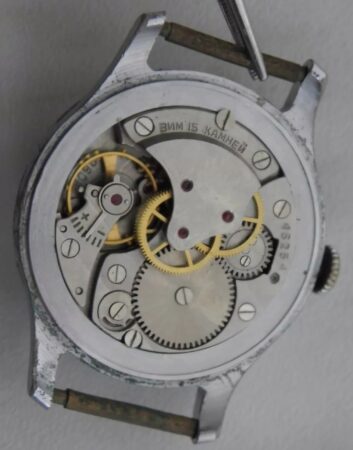 Mentions sur le calibre : ЗИМ 15 камней sur un pont, n° de série (45254) sur un autre. Côtes de Genèves