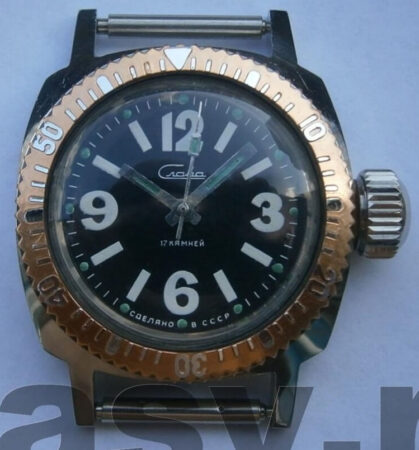 Pour montres femme « Slava » de type « Amphibian » (pour la plongée sous-marine). Étanchéité 20 atm. Les travaux suivants ont été réalisés :