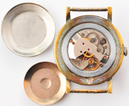 Mentions sur le calibre : seventeen 17 jewels 2009.1A sur le rochet, SU (Soviet Union) sur le pont.