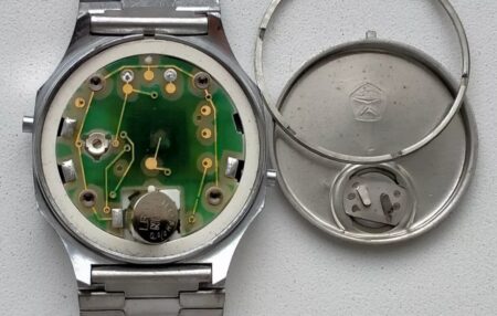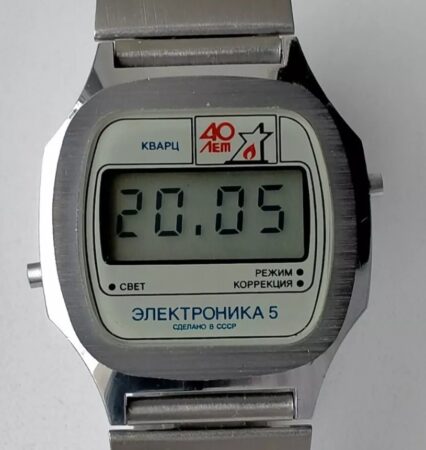 Montres à quartz LCD de marque Elektronika 5 produite par la Fabrique Elektronika de Minsk du Combinat électronique « Integral »