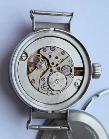 Gravure sur le mécanisme: logo Vostok sur la platine, SU (Soviet Union) et 2209 sur le point, cinq étoiles sur le rochet