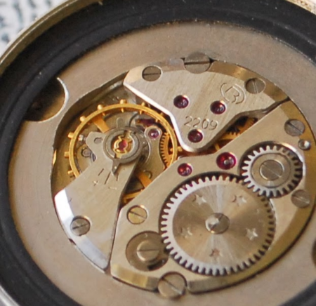 Gravure sur le mécanisme: logo Vostok sur la platine, SU (Soviet Union) et 2209 sur le point, cinq étoiles sur le rochet