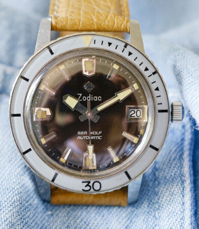 Montre rare dont le design a été inspiré de la Zodiac Seawolf (photos: café noir montres):