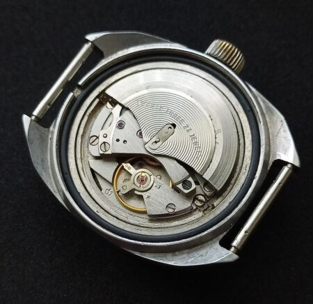 Mentions sur le calibre : dernier logo Poljot (couronne) sur la platine, 23 JEWELS sur le rotor, SU et 2616.2H sur le pont.