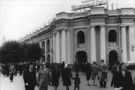 Ci-dessous: Le Gostiny Dvor en 1954. À cette époque, son territoire abritait 65 magasins de diveres organisations , bureaux, coopératives, usines, entrepôts et sièges d’organismes commerciales avec 680 emplois: