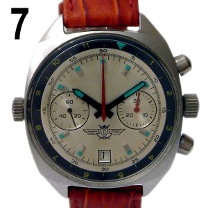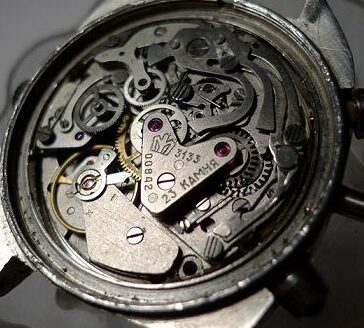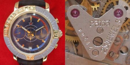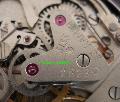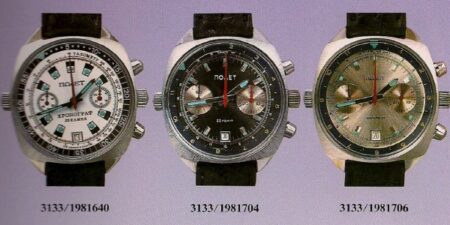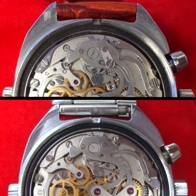 Vers 1983 les roues de chronographe, d’argentées deviennent dorées, donc à peu près au même moment où les chronographes deviennent disponibles au public. On voit souvent un mélange de roues de chronographe argentées et dorées en raison de réparations ou production de franken.