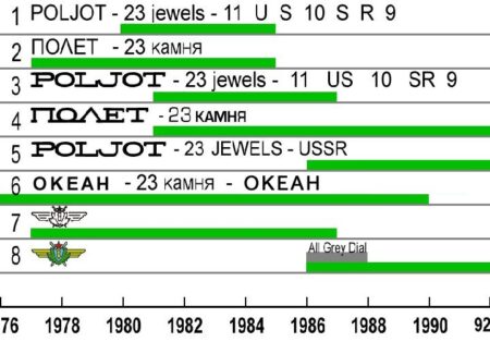 Les polices de caractères Serif ont commencé à apparaître sur les chronographes Poljot vers 1980.