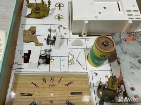 Réveil électromécanique en kit de la série pédagogique « Jeune horloger » (юный часовщик) de la 2e Fabrique de Montres de Moscou. En savoir plus sur la série « Jeune horloger »