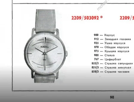 Marquage sur le mécanisme: n° de série (10021) sur la platine, 23 камней 2209 et logo Raketa sur le pont.