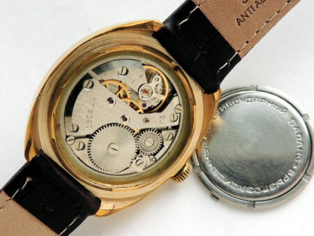Gravure sur le fond : противоударные бaлaнз (mouvement antichoc) et пылевлагозащищенные (étanche à l’eau et à la poussière)