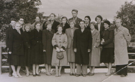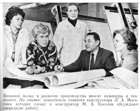 Mikhaïl Arsenievitch Kiselev avec un groupe de conceptrices en 1985