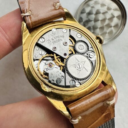 Mentions sur le calibre : n° de série sur la platine, 21 jewels (21 rubis), 2609Б et logo Raketa (raquette symbolisée) sur le pont.
