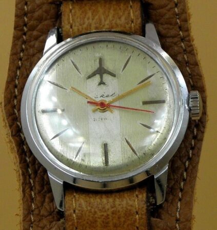 Cadran avec silhouette de Tupolev 104 et guillochage simulant des lignes de vitesse.