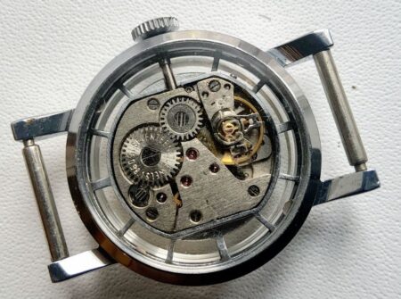 Mentions sur le calibre : 1509B.1 et SEVENTEEN 17 JEWELS sur le rochet, SU (Soviet Union) sur un pont