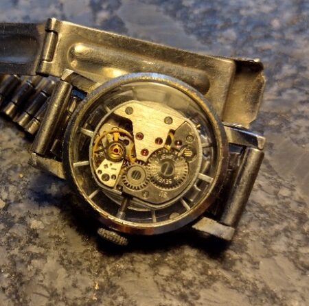 Mentions sur le calibre : 1509B.1 et SEVENTEEN 17 JEWELS sur le rochet, SU (Soviet Union) sur un pont