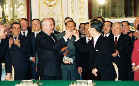 Modèle conçu pour la visite de Gorbatchev au Japon en 1991 sur base du modèle produit pour sa visite en Italie en 1989 (cf le « Gorbaciov » en italien).