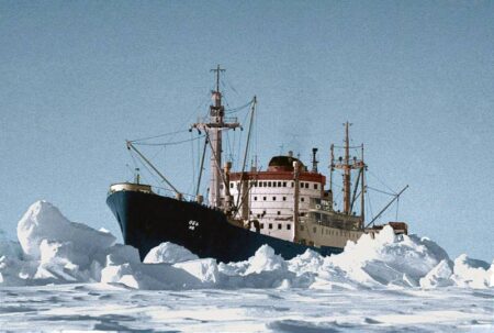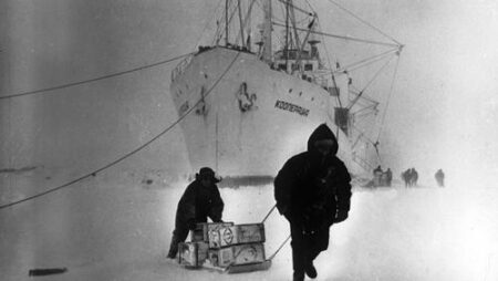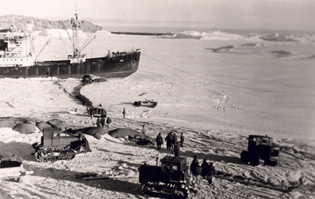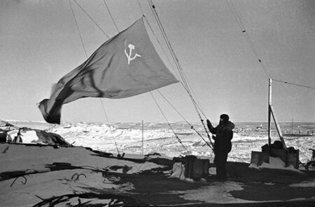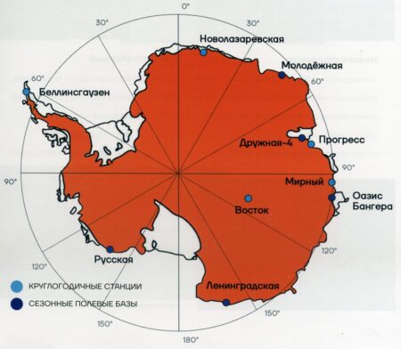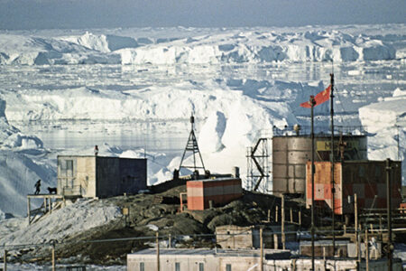 La première station polaire antarctique soviétique, Mirny, fut établie le long de la côte le 13 février 1956. Une deuxième station, Vostok, fut ouverte loin à l’intérieur de continent, près du pôle sud magnétique, le 16 décembre 1957.