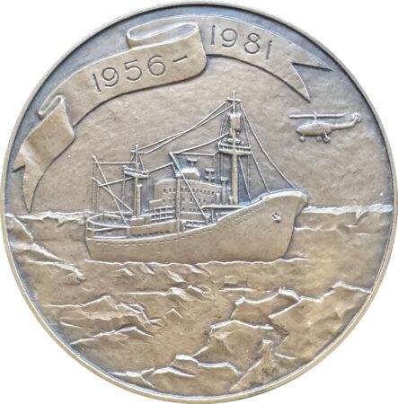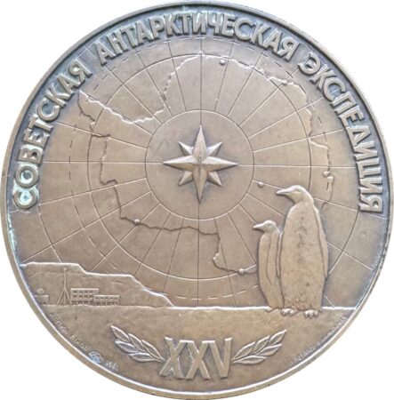 Ce premier modèle porte une mention indiquant: участники антарктической экспедиции, « participants de l’expédition antarctique ». Existe en version chromée et dorée.