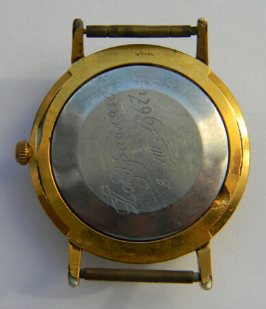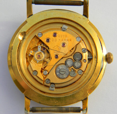 C’est le boitier plaqué or des Вымпел (Vimpel, « Pennant »), avec un poinçon Au20 au dos