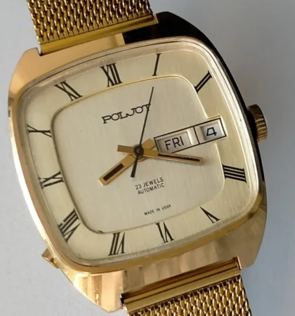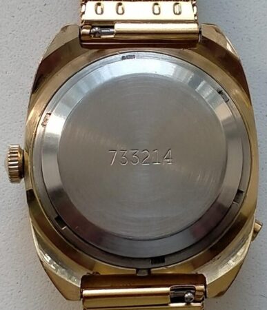 Gravure sur le fond: Aвтоподзавод (mécanisme automatique), logo Poljot (couronne), 733214,