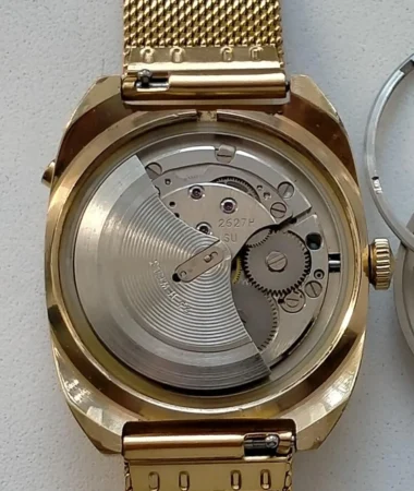 Marquage sur le mécanisme: 23 JEWELS sur le rotor, 2627H et SU (Soviet Union) sur le pont, logo Poljot sur la platine.