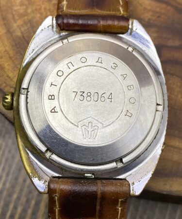 Gravure sur le fond: Aвтоподзавод (mécanisme automatique), logo Poljot (couronne), 738064,