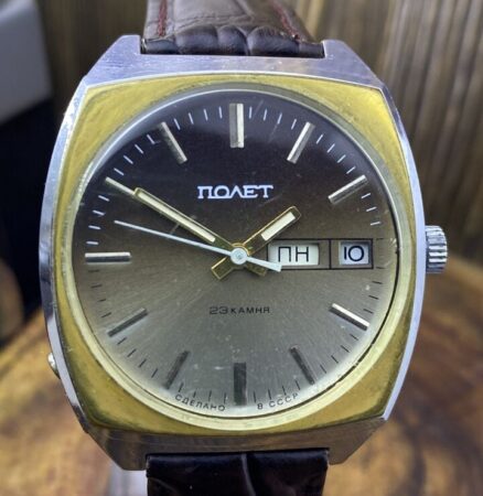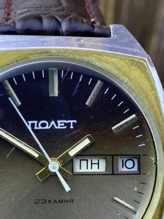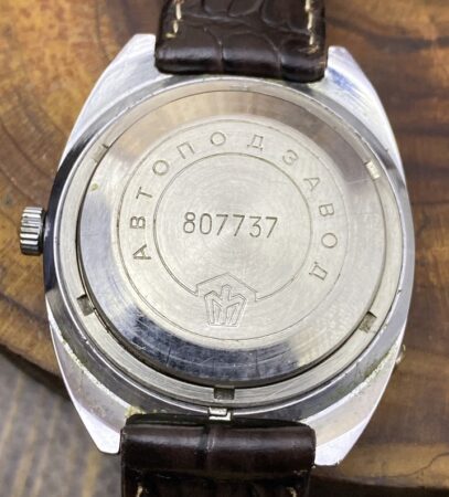 Gravure sur le fond: Aвтоподзавод (mécanisme automatique), logo Poljot (couronne), 807737,