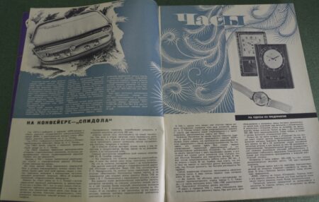 Magazine « Nouveautés ». Motos, jouets, montres, caméras. N° 1 de 1964. URSS.Журнал « Новые Товары ». Мотоциклы, игрушки, часы, кинокамеры. №1 за 1964 год. СССР.Avec une double page sur les montres et horloges: