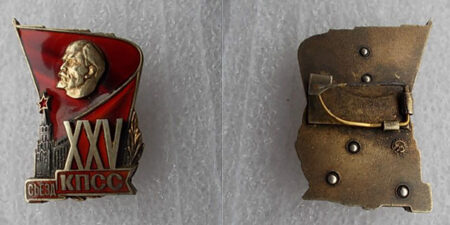Les délégués du congrès recevaient aussi un badge en argent et email rouge. Tradition remontant au congrès de 1966, ces badges n’étaient pas vendus dans le commerce. Celui du 25e Congrès :