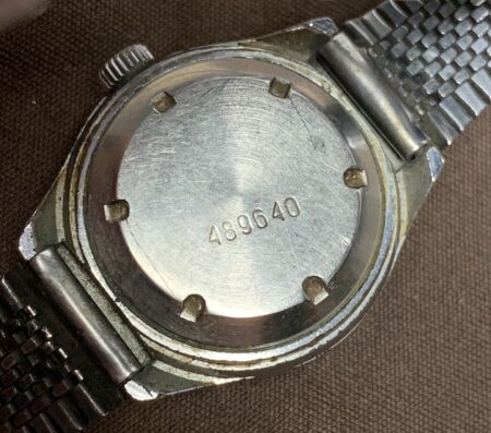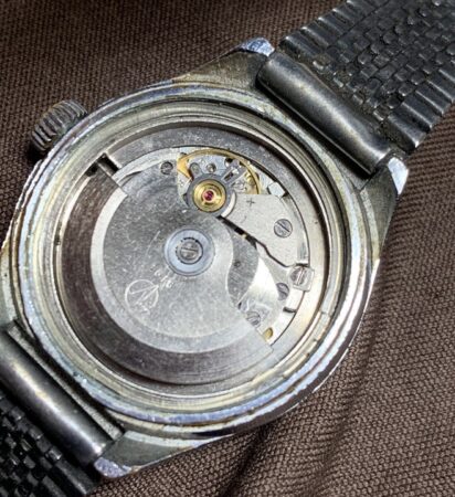 Mentions sur le cadran : 21 JEWELS SHOCKPROOK AUTOMATIC, sous l’axe des aiguilles, made in ussr (à six heures)