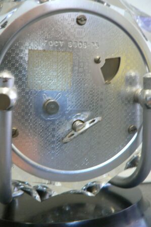L’arrière de l’horloge, en métal argenté, est estampé.
