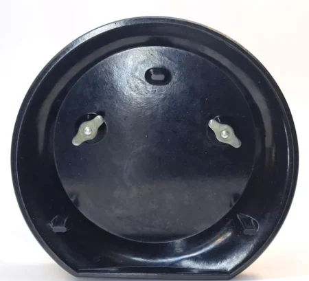 L’horloge est sur deux tiges fixées sur une socle de bakélite noire.