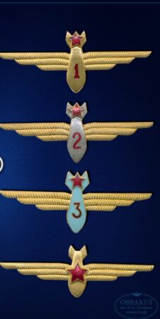 Les insignes des navigateurs (штурман) de 1re, 2e et 3e classe sont identiques à ceux des pilotes, mais présentent en plus sur le bouclier le contour d’une bombe, au centre duquel se trouve le chiffre 1, 2 ou 3 correspondant à la classe.