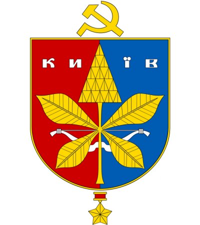 Au XVIe siècle, le voïvode de Kiev pris comme blason l’Archange Michel habillé de blanc et tenant une épée et un bouclier sur fond de gueules. En 1918, pendant la courte période d’indépendance, Kiev prit comme blason en sus de l’archange Michel et de l’arc, le trident du blason de l’Ukraine ; histoire de rappeler son statut de capitale. En 1969, un nouveau blason de style soviétique fut introduit aux feuilles de marronier et à l’arc sur un fond de gueules contenant le mot КИЇВ complété par un marteau et une faucille et la médaille de ville-héros. A partir de 1973, la feuille de marronnier devint le symbole de Kiev.