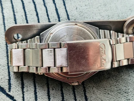 Type d’attaches spéciales, centrées, nécessitant un bracelet spécial, métallique, à boucle déployante marquée Cлава (Slava).