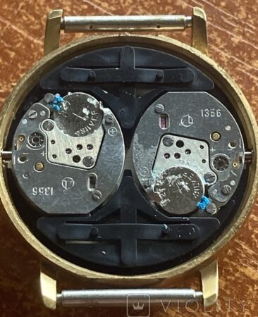 Montre bracelet, à deux cadrans, avec deux mécanismes, de la Fabrique de Montres de Minsk