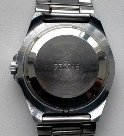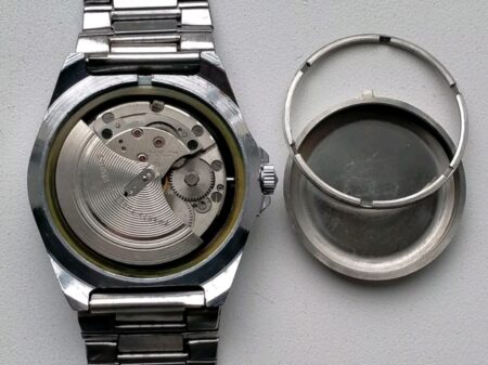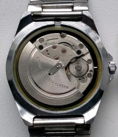 Mentions sur le calibre : Logo Poljot (couronne) sur la platine, TWENTY THREE 23 JEWELS et 2615.2H sur le rotor, et SU sur le pont.
