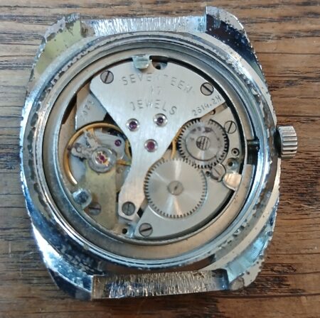 Mentions sur le calibre : 2614.2H et seventeen 17 jewels sur le pont, n° de série (1202) sur la platine