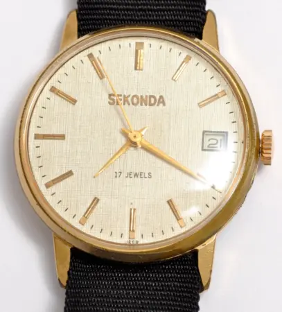Montre-bracelet, mécanique, pour l’exportation en Grande-Bretagne, à simple tantième de la 1ère Fabrique de Montres de Moscou