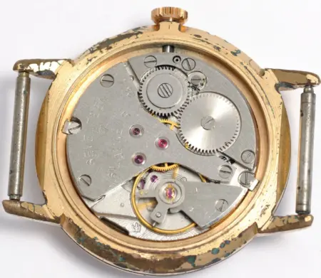Mentions sur le calibre : SEVETEEN 17 JEWELS et 2614.2H sur le pont, logo Poljot (couronne) sur la platine.