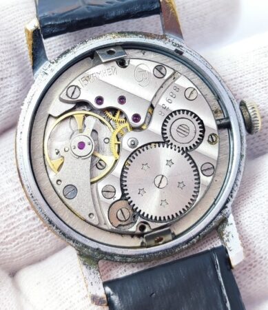 Cette montre emboite un mécanisme 2602 mais produit par la Fabrique de Montres de Tchistopol et non par par la fabrique Maslenikov. Il s’agit presque certainement d’un remplacement postérieur à la production.