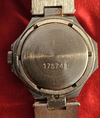 L’ensemble boîtier/bracelet semble a été fourni par la Fabrique de pièces de montre de Vitebsk (voir ici pour leurs bracelets)