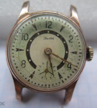 Mentions sur le calibre : ЗИМ et 15 камня (15 rubis) sur un pont, n° de série sur un autre, 2602 sur la platine. Côtes de Genève